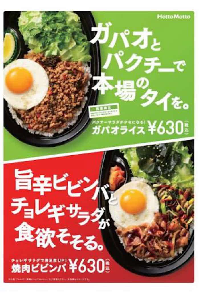 ほっともっと ガパオライス 630 焼肉ビビンバ 630 各税込