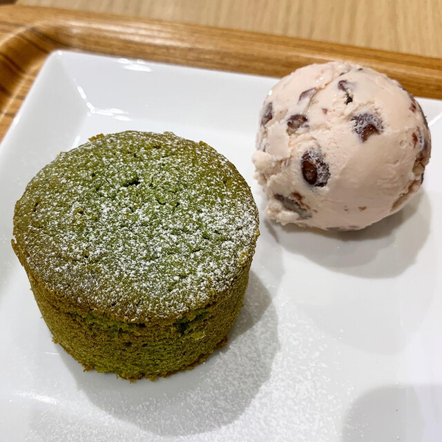 抹茶フォンダンショコラ 小倉アイスを添えて ナナズ グリーンティ